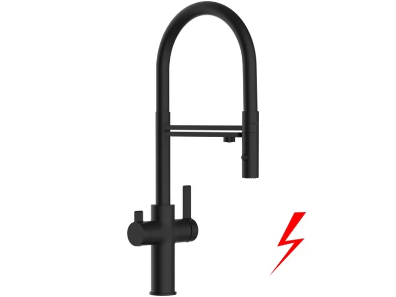 VIZIO NIEDERDRUCK 3 Wege Wasserhahn Küchenarmatur FC mit 360° Schwenkbarem Auslauf Abnehmbare 2 Strahl Handbrause Schwarz Matt   Schwarz