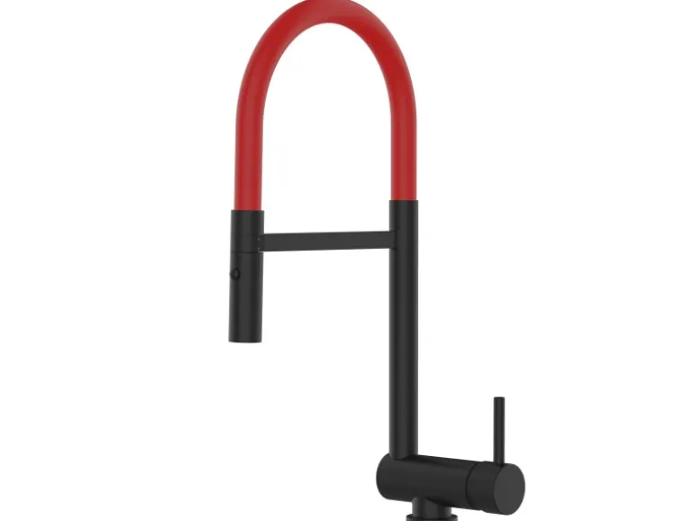 VIZIO Wasserhahn Vorfenster Küchenarmatur Umklappbar 6 CM mit 360° Schwenkbarem Auslauf Abnehmbare 2 Strahl Handbrause Schwarz Matt   Rot