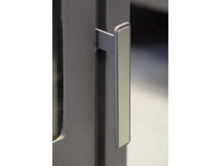 Die Scheibenspülung, die einen Luftstrom entlang der geraden Scheibe führt und diese dadurch aufheizt, sorgt dafür, dass sich weniger Ruß auf der Scheibe ablagert, die Sicht auf die Flammen somit stets frei bleibt und das Sichtfenster seltener gereinigt werden muss. Die Form der Scheibe unterstützt das geradlinige Design des Kamins.