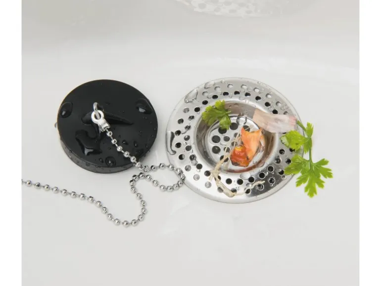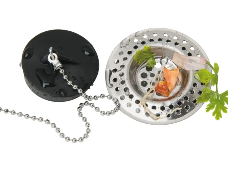 Sammelt kleine Küchenreste im Spülbecken zur einfacheren Entsorgung