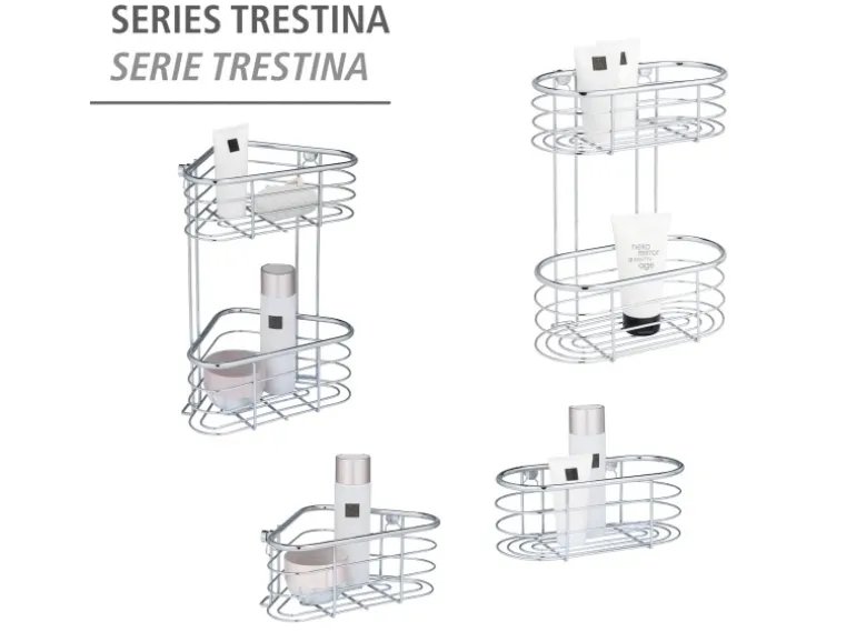 Optisch und praktisch eignet sich die hochwertige Eckablage Trestina ideal für den Einsatz im Badezimmer. Pflegeprodukte in Flaschen oder Tuben können hier sortiert und elegant aufbewahrt werden. Im Duschbereich finden Shampoos oder Duschgele den richtigen Platz auf der gewünschten Höhe.