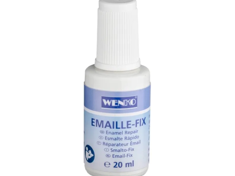 Der Pinsel ist im Verschluss integriert und ermöglicht einfachste Anwendung. Einfach auf die betroffene Stelle auftragen, 2 Stunden trocknen lassen und schon scheint die behandelte Stelle in seidig-mattem Glanz. Zudem ist die Emaille Fix wasserverdünnbar und temperaturbeständig. Die 20 ml Flüssigkeit ist lösungsmittelfrei .