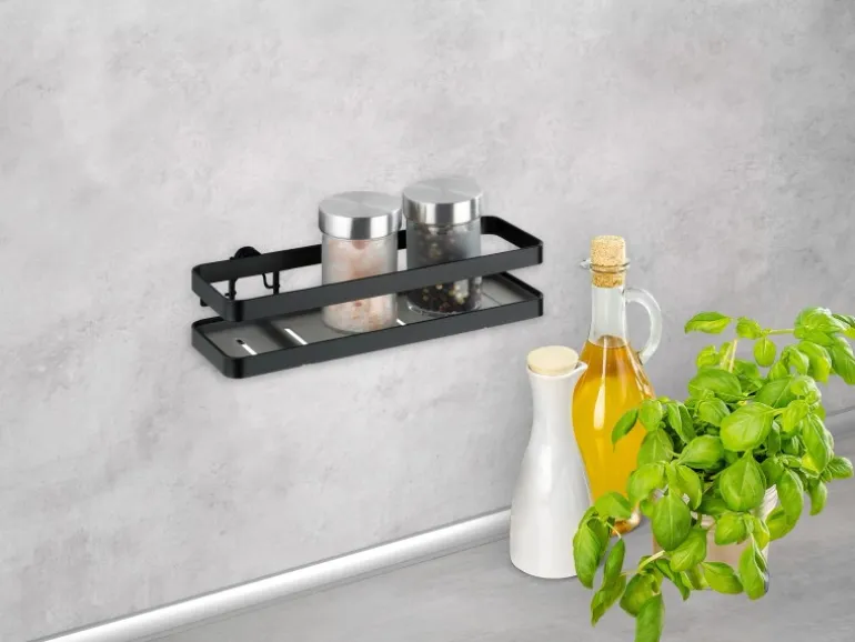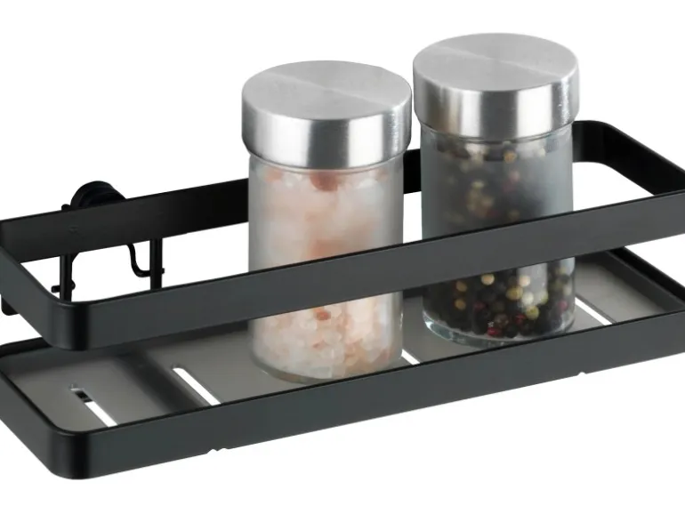 Im Gewürzregal Gala werden alle Gewürze beim Kochen stets griffbereit aufbewahrt. Das Regal mit einer Ablagefläche (22 x 6,8 x 5 cm) aus grauem Kunststoff bietet ausreichend Platz für bis zu vier handelsübliche Gewürzbehälter. Natürlich finden auch weitere Dosen und viele andere Küchenhelfer eine attraktive Aufbewahrungsmöglichkeit in Griffnähe.