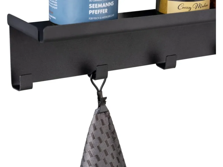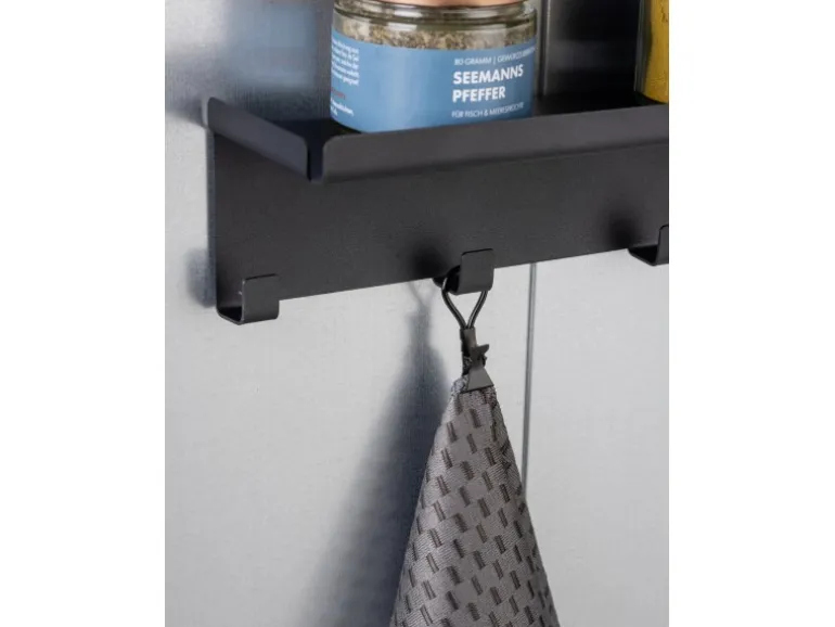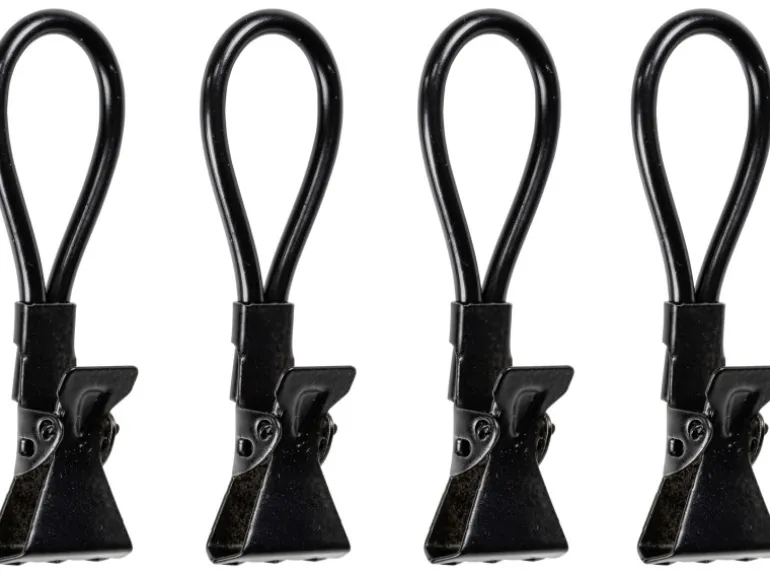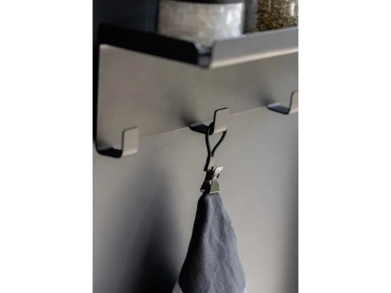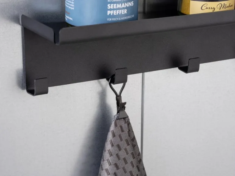 Mit den Klemm-Ösen können Sie Ihre Textilien ordentlich und griffbereit aufbewahren oder feuchte Tücher zum Trocknen hygienisch aufhängen. Das nützliche Quartett passt durch das elegante Schwarz auch optisch in nahezu jede Küchen- oder Badeinrichtung. Mit einer Größe von (B x H x T): 1,7 x 5,3 x 1 cm bietet jede Klemm-Öse ausreichend Platz für gängige Küchentextilien und wirkt dabei nicht wuchtig.