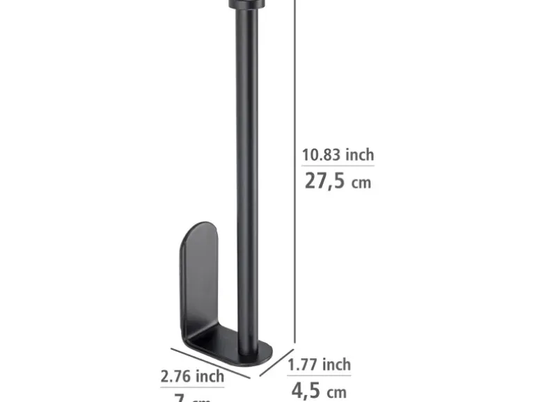 Der Küchenrollenhalter besteht aus Aluminium. Das Material ist rostfrei und somit langlebig. Sein schlichtes Design in Schwarz macht den hängenden Halter zum unauffälligen, aber unverzichtbaren Küchenhelfer für alle, die es minimalistisch mögen. Auf den praktischen Halter mit den Maßen von (B x H x T): 27,5 x 4,5 x, 7 cm passen handelsübliche Küchenrollen, die sich ganz leicht austauschen lassen.