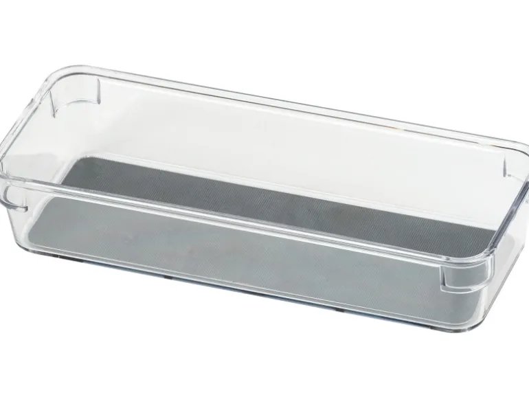 Im modernen Design aus hochwertigem grau-transparentem Kunststoff gefertigt passt die quadratische Box in jede handelsübliche Schublade.