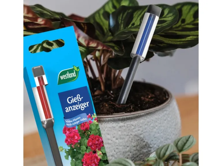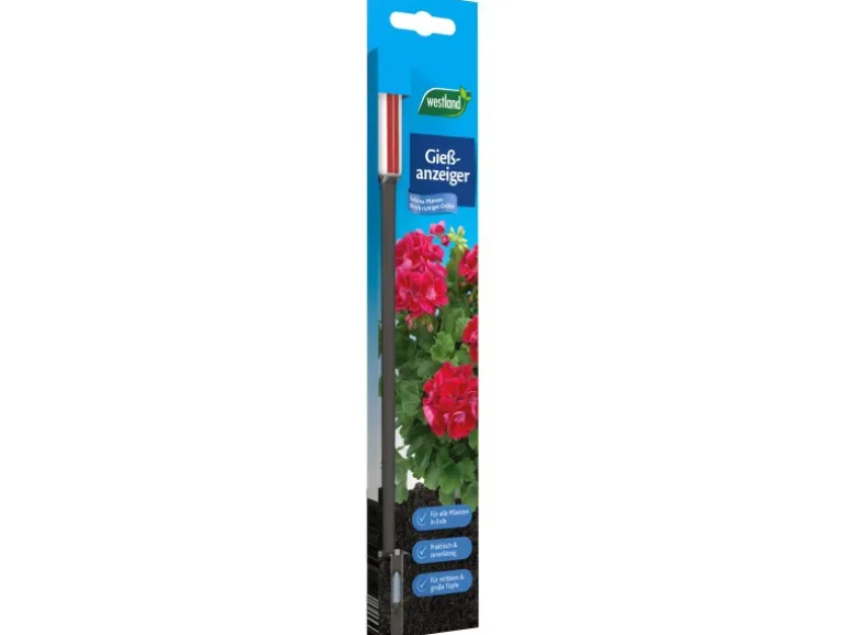 Der Westland Gießanzeiger ist ein intelligenter Helfer zur optimalen Pflege für Pflanzen in Blumenerde. Er zeigt Ihnen zuverlässig und komfortable den optimalen Gießzeitpunkt an: Ist die Anzeige rot, muss gegossen werden – ist sie blau, ist noch genügend Feuchtigkeit im Substrat gespeichert.