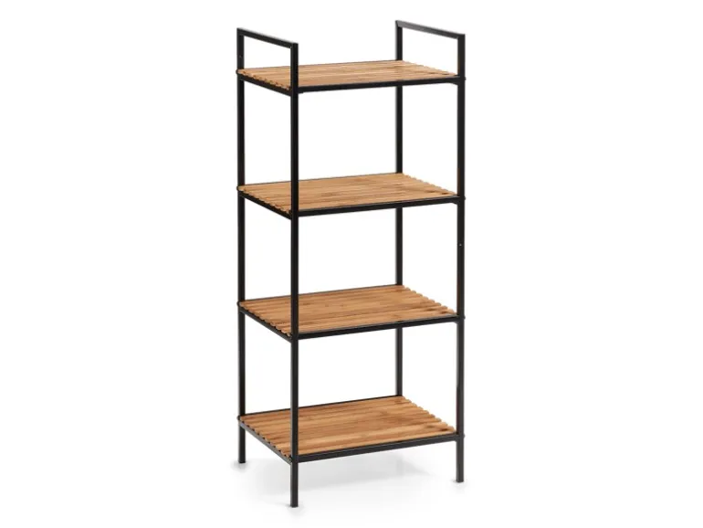 Das Zeller Standregal wurde aus hochwertigem Metall und Bambus gefertigt und bietet mit seinen vier Böden ausreichend Platz für Ihre Badutensilien. Die Ablagefächer sind aus hochwertigem Bambus gefertigt. Das klare Design in Verbindung mit der Ausstrahlung des fein gemaserten Bambus bringen ein angenehmes Flair in Ihr Badezimmer. Mit diesem ebenso praktischen wie eleganten Helfer gehören Platzprobleme der Vergangenheit an. Die Montage geht schnell und ist unkompliziert.