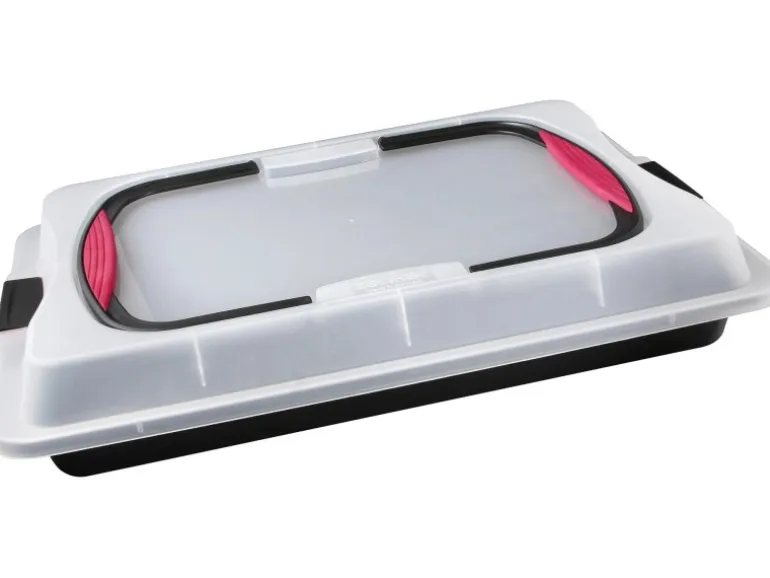 Aus antihaftbeschichtetem Stahlblech, Abdeckung aus Kunststoff