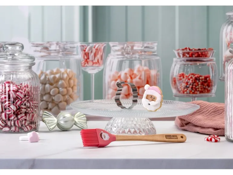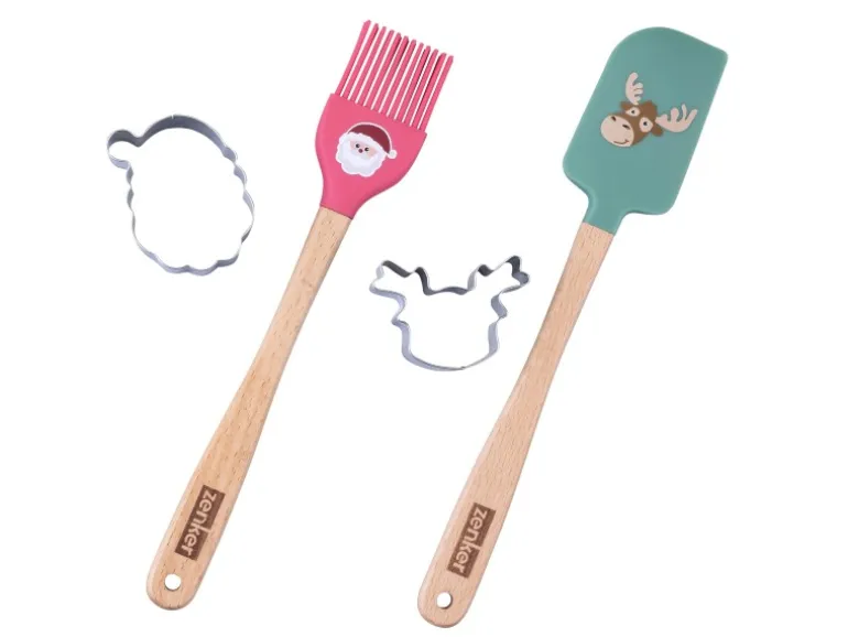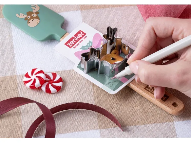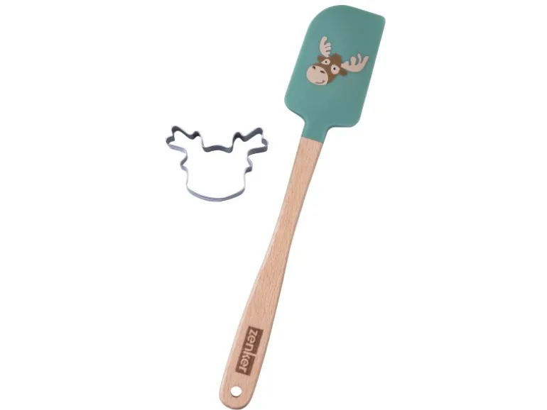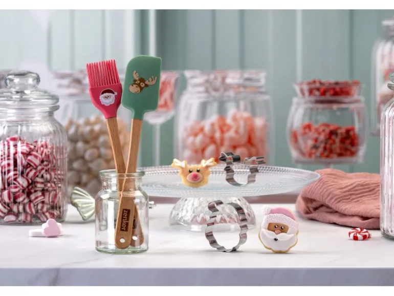 2 Varianten: Pinsel und Ausstecher Weihnachtsmannoder Teigschaber und Ausstecher Elchkopf