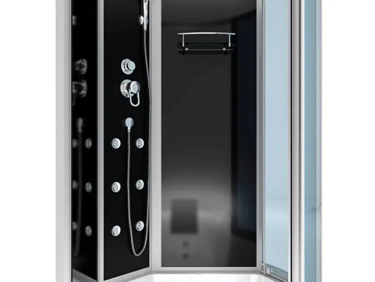 Farbe der Rückwände Schwarz, Außenmaße der Dusch-& Whirlpool Kombination 98x170x225cm;