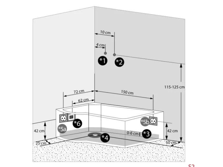AcquaVapore K50-R30-WP 3in1 Whirlpool-/ Wannen-/ Duschsystem Dieses wunderschöne Whirlpool und Duschsystem ist komplett aus 6mm Sicherheitsglas, hochwertigen Aluminiumprofilen und Sanitäracryl hergestellt. Wir verwenden bei unseren Wannen/Duschkabinen nur hochwertige Materialien. Größe, Farbe und allg. Ausstattung: – Farbe des Duschaufsatz: Schwarz – 100×170 cm – Höhe der Badewanne etwa 55cm, Mindestaufbauhöhe *1 (Skizze S1) – Füllvolumen etwa 180Liter (gemessen ohne eine Person in der Wanne) – integrierter Sitz (bis 130kg) – Glasregal mit Ablage für Shampoo o.ä. – Handbrausehalter Wasser-Funktionen: – Einhebelmischer mit mehrfach Umschalter, Grundkörper aus Messing / hochwertig verchromt – extra große Regendusche – Handbrause mit drei Strahlarten – 6 Rückenmassagedüsen am Duschpannel – 3 verstellbare und 2 starre Wassermassagedüse in der Wanne – Wasserfall zum Füllen der Wanne – Ablaufgarnitur mit Wannenüberlauf, sowie Abflussschlauch 1m mit HT40 Rohranschluss Elektrische Funktionen: – kein Touchscreen-Display – Wasser-Pumpe 750W für Wassermassage Die Anschlüsse Alle Anschlüsse (Wasser, Abfluss) sind flexibel. Die Dusche/Wanne passt somit häufig problemlos auf vorhandene Anschlüsse. Alle Schläuche werden zudem in verstärkter Ausührung geliefert. Die Wasserschläuche zur Dusche sind bis zu einem maximalen Druck von 4 Bar ausgelegt. Die Wasserschläuche zu den einzelnen Brausen sind in doppelwandiger Ausführung mit Textileinlage und ebenfalls weit über den normalen Wasserdruck hinaus belastbar. – Wasseranschlüsse für Kalt/Warmwasser: 1/2″ 2-4 bar Wasserdruck – Stromanschluss: 220-230V, 50/60 Hertz, 0,7A Schukosteckdose – geeignet für den Einsatz eines Durchlauferhitzers (min. 18KW Heizleistung empfohlen) – flexibler Abwasseranschluss (HT 50mm), integriertem Siphon mit Geruchsverschluss – Anschluss-Maße (Skizze S2): *1 Warm- und *2 Kaltwasser, auch gegenüberliegend möglich, *3 Bereich für Abflussrohre, *4 freier Bereich um den Abfluss-Siphon, *5a Stromanschluss nur Variante Radio, *5a Stromanschluss nur Variante Whirlpool, *6 Telefondose Die Duschwanne besteht aus weißem, verstärktem, hochwertigem Sanitäracryl. Unter der Wanne (bis 150kg belastbar, Verstärkung möglich) befindet sich ein Stahlrahmen mit einstellbaren Füßen. Diese werden zum standsicheren Aufbau der Badewanne einzeln in der Höhe eingestellt. Natürlich enthält diese tolle Kombination auch eine passende Ablaufgarnitur. Alle Teile der Wanne/Dusche werden vor der Anlieferung zu uns vom Hersteller geprüft und nach Ankunft in unserem Lager wird nochmals stichprobenhaft geprüft. Es werden keine minderwertigen oder funktionsunfähigen Bauteile verarbeitet. Die Rahmenkonstruktion ist komplett aus Aluminium. Die Badewanne ist aus dickem Sanitär- Acryl welches zusätzlich glasfaserverstärkt wurde. Die Duschwanne steht auf einem sehr stabilen Stahlrahmen mit einzeln einstellbaren Füßen. Diese Duschwanne kann durch zwei Personen leicht aufgebaut werden. Natürlich können Sie auch einen Fachbetrieb mit der Montage beauftragen.