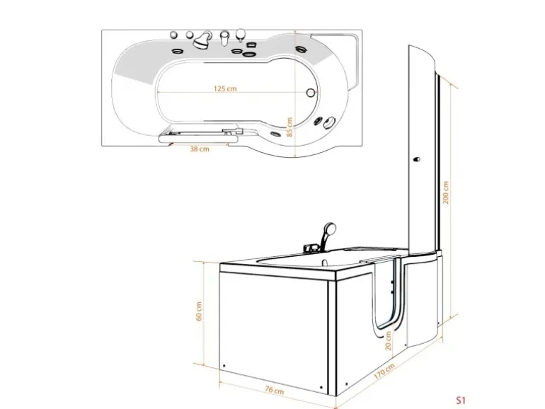 – Außenmaße des Wannengrundkörper: 170x85cm
