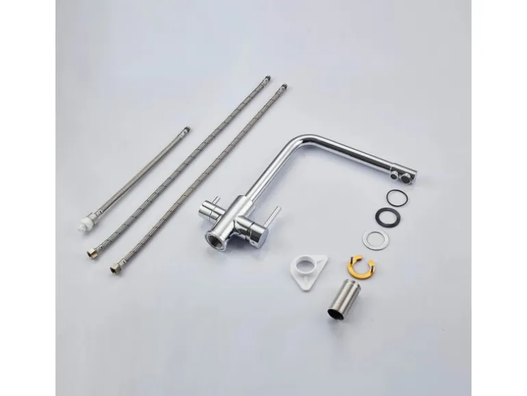 Lieferumfang: 1x Küchenarmatur, 2x Flexible Anschlussschläuche G3/8″, 1x Installationspaket.