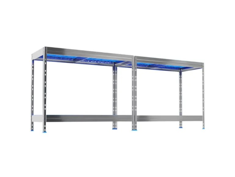 Durch die innovative Steckverbindung lässt sich das Regal mit höhenverstellbaren Böden schnell und einfach aufbauen. Sie brauchen dadurch keine Schrauben. Somit kann das Regal auch jederzeit schnell und einfach ab- und wieder aufgebaut werden.