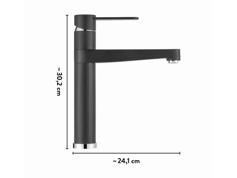 Die enthaltene Mischdüse sorgt für einen weichen Wasserstrahl. Außerdem haben wir eine hochwertige Kartusche mit keramischen Dichtscheiben für dich verbaut – so kann es nach dem Einbau gleich losgehen. Und weil du eine Küche willst, die lange hält, besteht die Armatur aus solidem Messing. Die Oberfläche der Armatur hat eine besondere schwarze Farbgebung. Und damit du bei der Montage nicht unnötig Zeit verschwenden musst, legen wir der Armatur alles an Material bei, das du dafür brauchst.