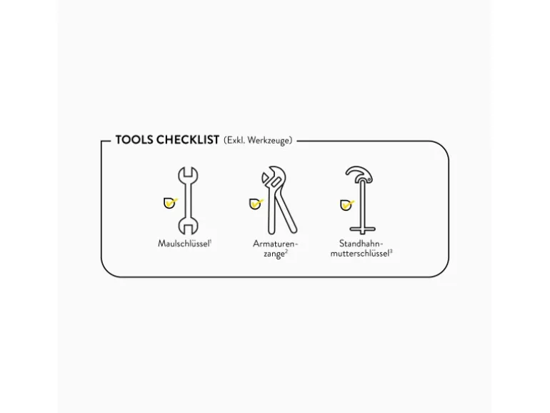 Inkl. Anschlussschläuchen und Befestigungsmaterial