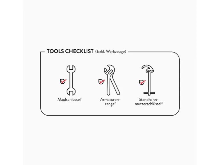 Inkl. Anschlussschläuche und Befestigungsmaterial