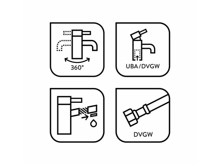 Inkl. Anschlussschläuchen und Befestigungsmaterial