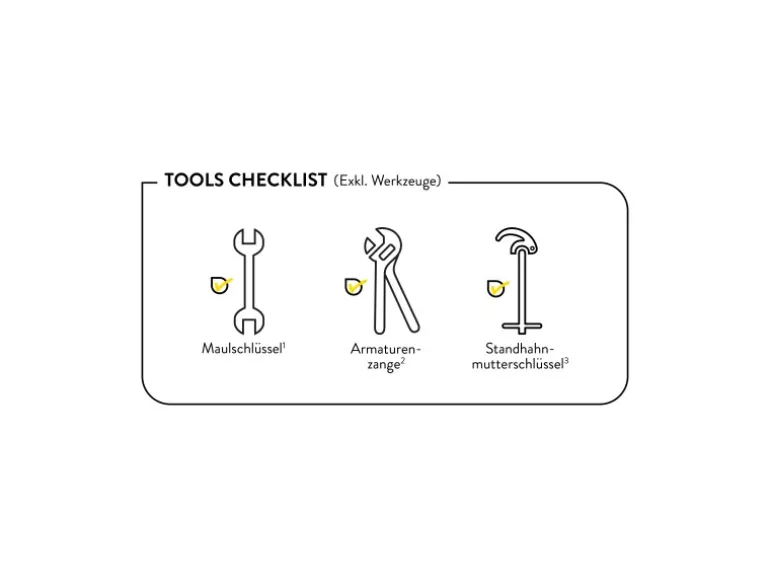 Inkl. Anschlussschläuchen und Befestigungsmaterial