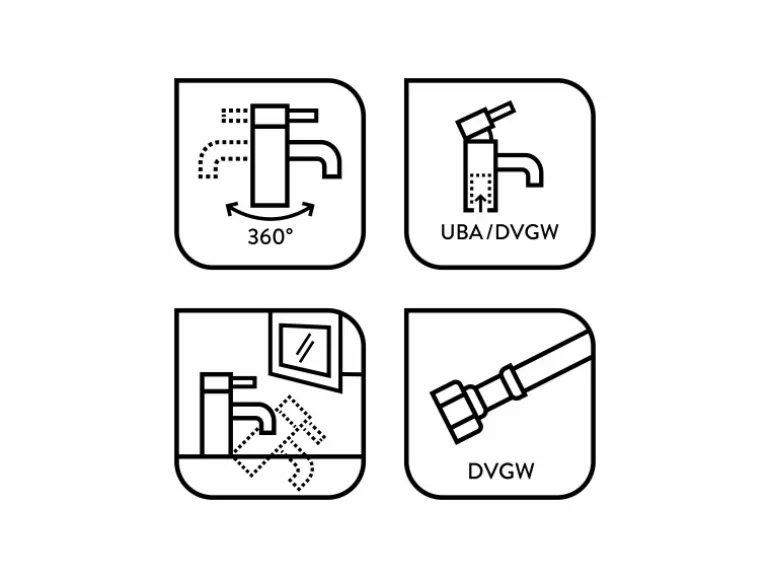 Schwenkbar um 360°: Praktisch, um alle Stellen im Waschbecken zu erreichen