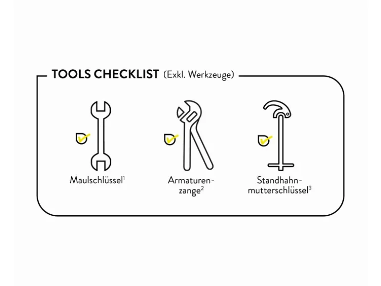 Inkl. Anschlussschläuchen und Befestigungsmaterial
