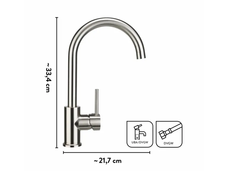Einen weichen Wasserstrahl bietet dir die enthaltene Mischdüse. Und da wir dir eine hochwertige Kartusche mit keramischen Dichtscheiben bereits verbaut haben, kannst du nach dem Einbau sofort loslegen. Und weil du eine Küche willst, die lange hält, besteht die Armatur aus solidem Messing. Für ein schickes Aussehen besitzt die Armatur eine verchromte Oberfläche. Und damit du bei der Montage nicht unnötig Zeit verschwenden musst, legen wir der Armatur alles an Material bei, das du dafür brauchst.