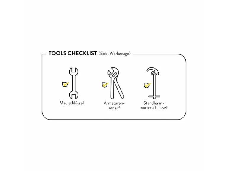 Inkl. Anschlussschläuchen und Befestigungsmaterial