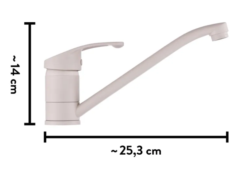 Die enthaltene Mischdüse sorgt für einen angenehm weichen Wasserstrahl beim Abspülen. Damit du nach dem Einbau sofort starten kannst, haben wir eine hochwertige Kartusche mit keramischer Dichtung in der Küchenarmatur verbaut. Und weil du eine Küche willst, die lange hält, besteht die Armatur aus solidem Messing. Mit ihrer matten Oberfläche in Beige ist die Küchenarmatur ein echter Blickfang. Und damit du bei der Montage nicht unnötig Zeit verschwenden musst, legen wir der Armatur alles an Material bei, das du dafür brauchst.