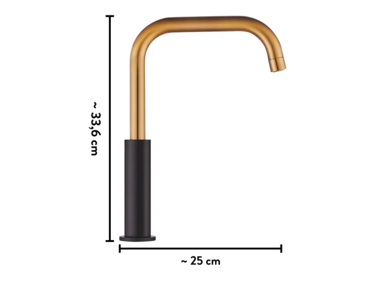 Für einen weichen Wasserstrahl beim Abspülen besitzt die Küchenarmatur eine Mischdüse. Und damit du nach dem Einbau starten kannst, haben wir die Armatur bereits mit einer Kartusche samt keramischen Dichtscheiben ausgestattet. Und weil du eine Küche willst, die lange hält, besteht die Armatur aus solidem Messing. Mit ihrer goldenen und schwarzen Oberfläche wirkt die Armatur modern und edel zugleich. Und damit du bei der Montage nicht unnötig Zeit verschwenden musst, legen wir der Armatur alles an Material bei, das du dafür brauchst.