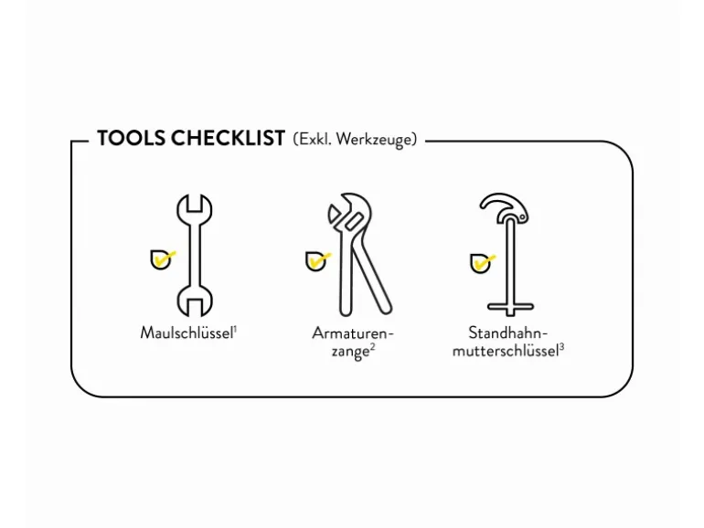 Inkl. Anschlussschläuchen und Befestigungsmaterial