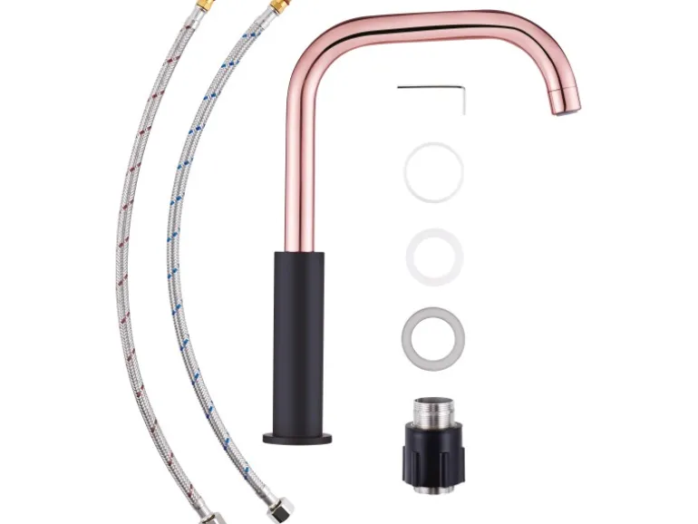 Für einen weichen Wasserstrahl beim Abspülen besitzt die Küchenarmatur eine Mischdüse. Und damit du nach dem Einbau starten kannst, haben wir die Armatur bereits mit einer Kartusche samt keramischen Dichtscheiben ausgestattet. Und weil du eine Küche willst, die lange hält, besteht die Armatur aus solidem Messing. Mit ihrer goldenen und schwarzen Oberfläche wirkt die Armatur modern und edel zugleich. Und damit du bei der Montage nicht unnötig Zeit verschwenden musst, legen wir der Armatur alles an Material bei, das du dafür brauchst.