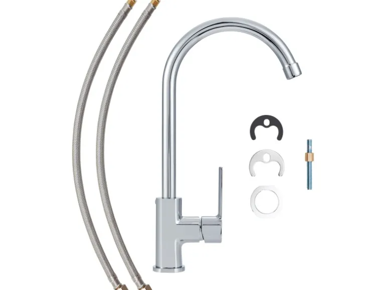 Die enthaltene Mischdüse sorgt für einen angenehm weichen Wasserstrahl. Gleich nach dem Einbau kann es losgehen, denn die hochwertige Kartusche mit keramischen Dichtscheiben haben wir dir bereits verbaut. Und weil du eine Küche willst, die lange hält, besteht die Armatur aus solidem Messing. Mit ihrer verchromten und glänzenden Oberfläche ist die Küchenarmatur ein echter Hingucker. Und damit du bei der Montage nicht unnötig Zeit verschwenden musst, legen wir der Armatur alles an Material bei, das du dafür brauchst.