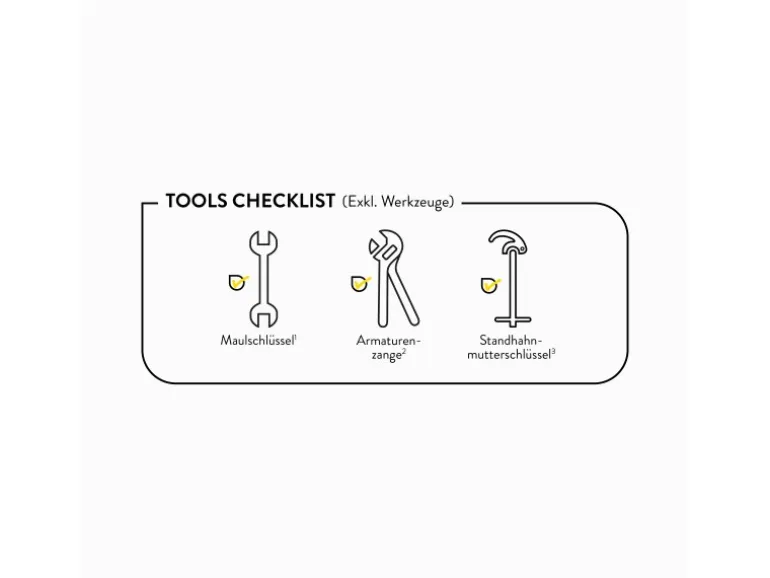Inkl. Anschlussschläuchen und Befestigungsmaterial