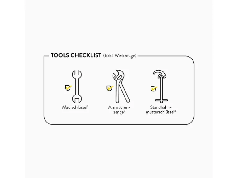 Inkl. Anschlussschläuchen und Befestigungsmaterial