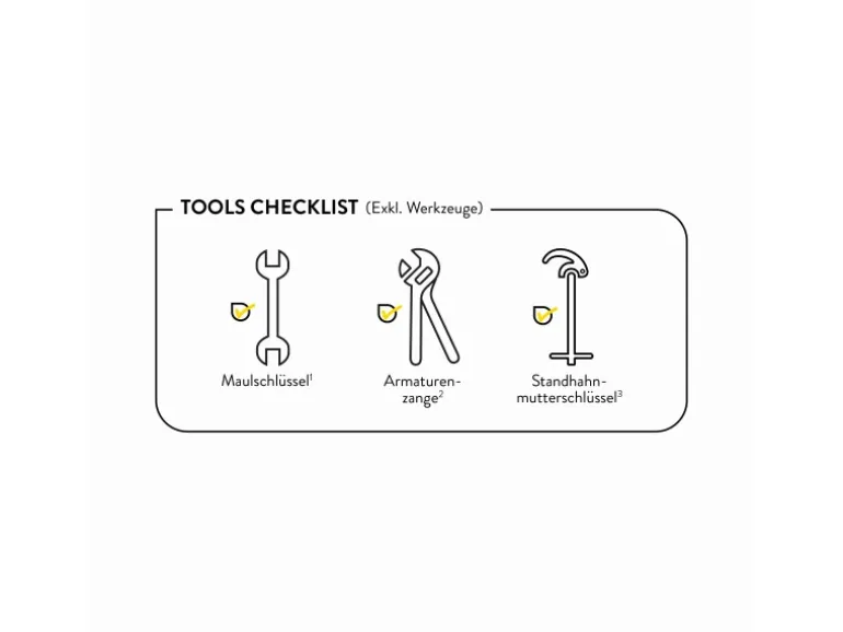 Inkl. Anschlussschläuchen und Befestigungsmaterial