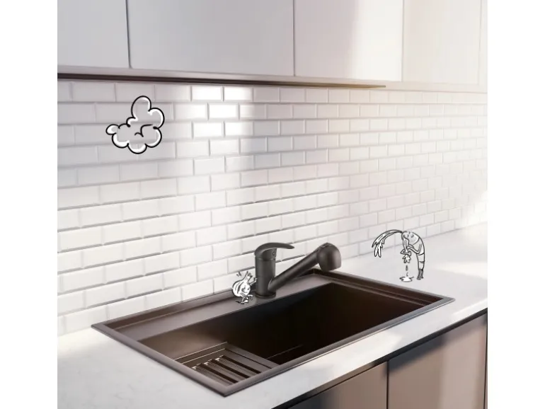 Einen weichen Wasserstrahl bietet dir die enthaltene Mischdüse. Und da wir dir eine hochwertige Kartusche mit keramischen Dichtscheiben bereits verbaut haben, kannst du nach dem Einbau sofort loslegen. Und weil du eine Küche willst, die lange hält, besteht die Armatur aus solidem Messing. Für ein schickes Aussehen besitzt die Armatur eine schwarz matte Oberfläche. Und damit du bei der Montage nicht unnötig Zeit verschwenden musst, legen wir der Armatur alles an Material bei, das du dafür brauchst.
