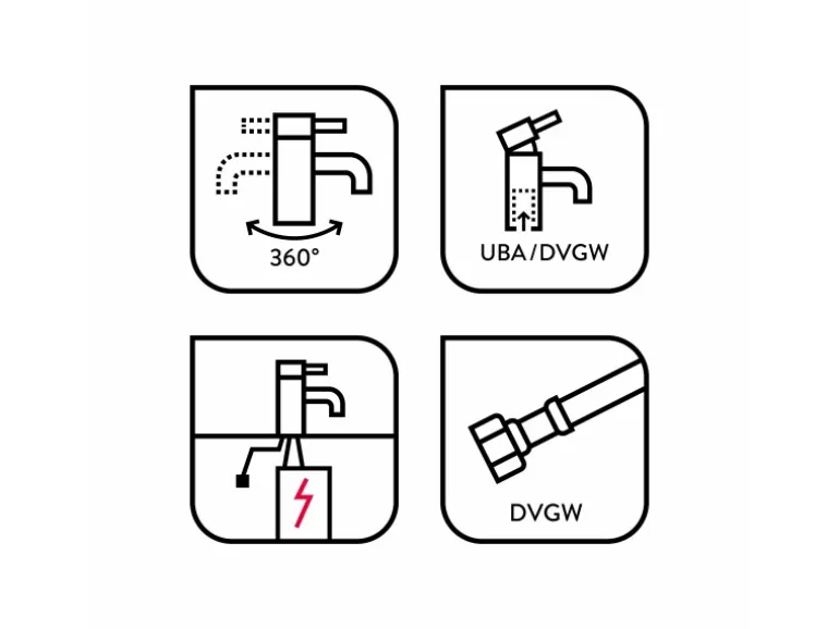 Inkl. Anschlussschläuchen und Befestigungsmaterial