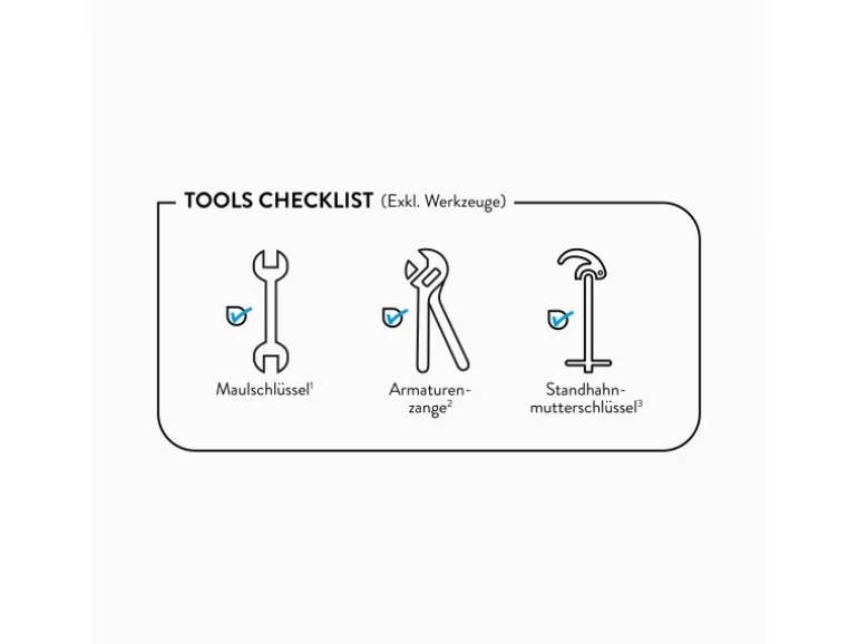 Inkl. Anschlussschläuchen und Befestigungsmaterial