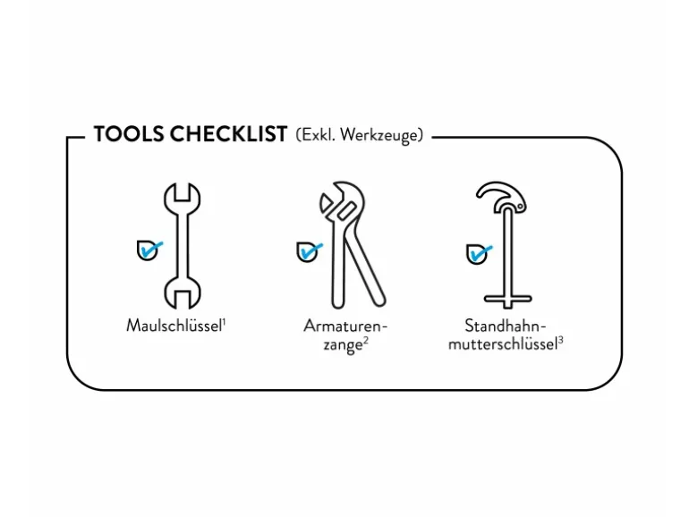 Inkl. Anschlussschläuchen und Befestigungsmaterial