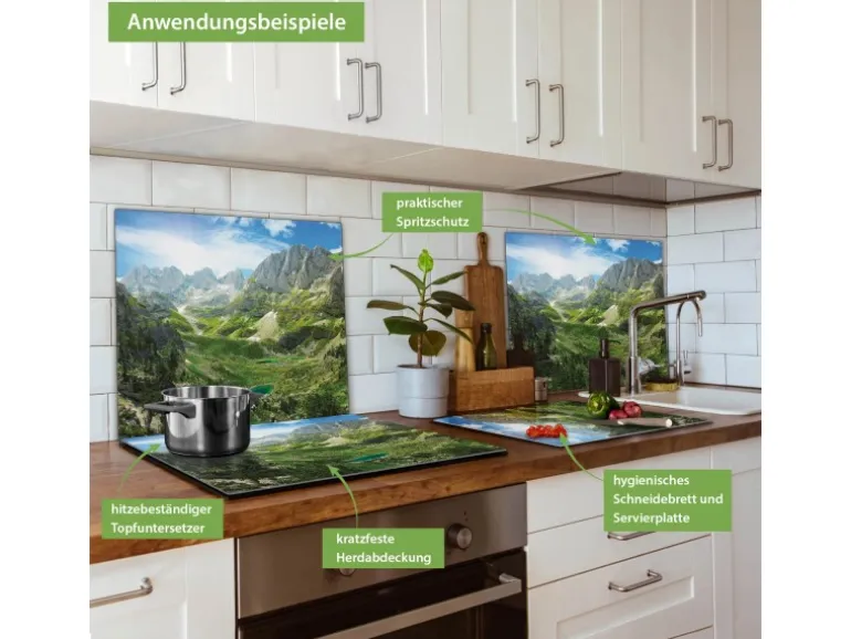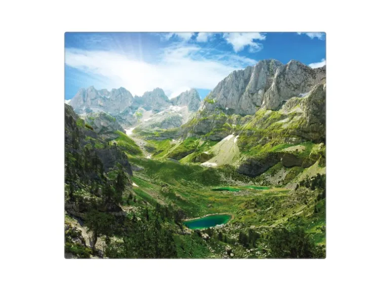 Banjado Herdabdeckplatte Glas 1 Teilig 60x52CM Schneidebrett Herdabdeckung Mit Motiv Bergsee Alpen