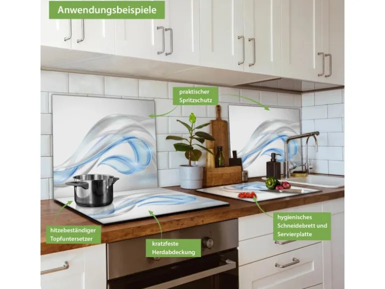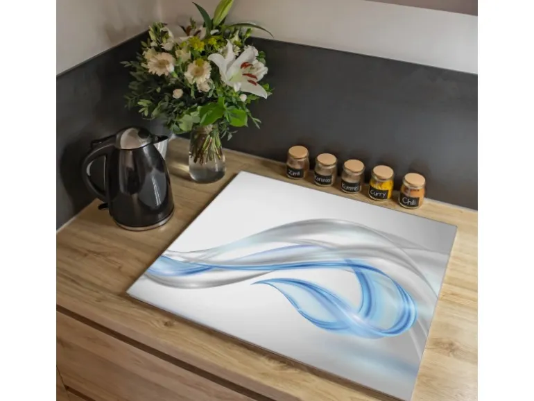 Banjado Herdabdeckplatte Glas 1 Teilig 60x52CM Schneidebrett Herdabdeckung Mit Motiv Blauer Schleier