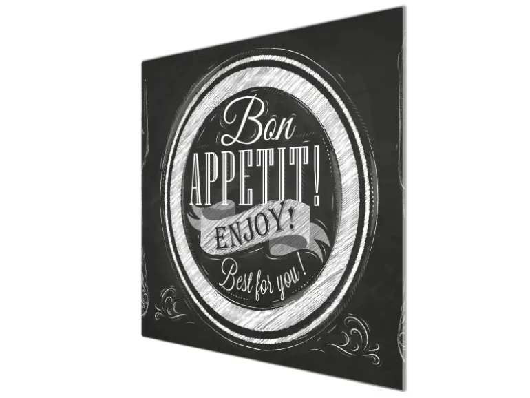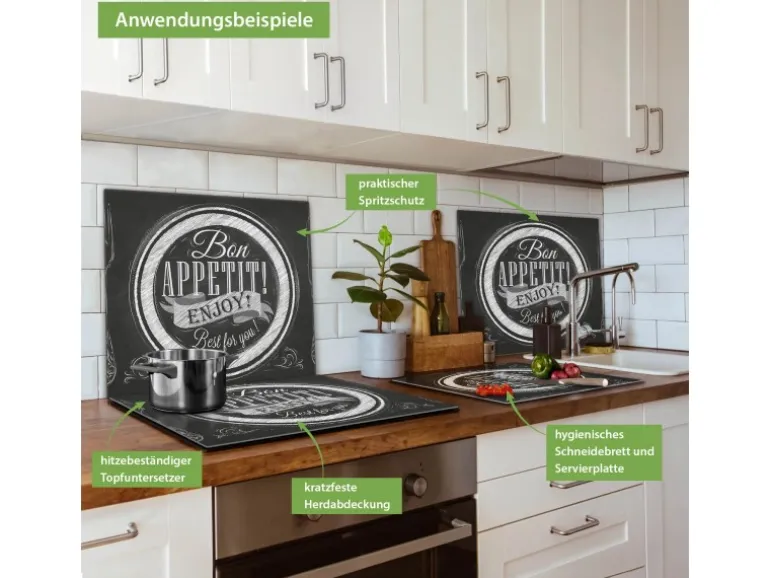 Banjado Herdabdeckplatte Glas 1 Teilig 60x52CM Schneidebrett Herdabdeckung Mit Motiv Bon Appetit