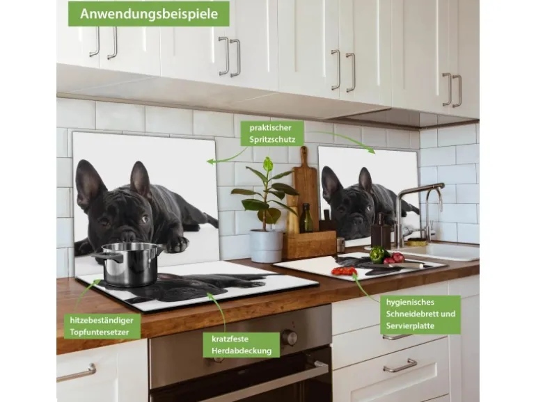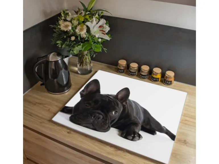 Banjado Herdabdeckplatte Glas 1 Teilig 60x52CM Schneidebrett Herdabdeckung Mit Motiv Bulldogge