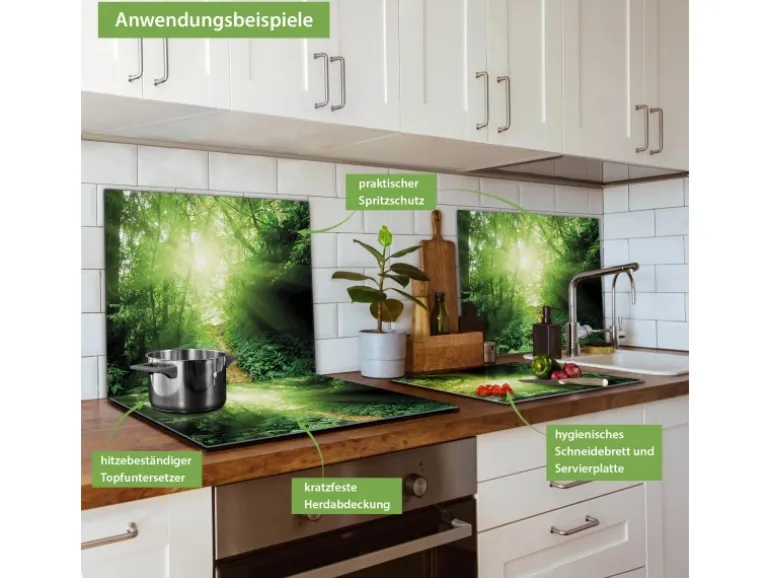 Banjado Herdabdeckplatte Glas 1 Teilig 60x52CM Schneidebrett Herdabdeckung Mit Motiv Dschungel Malaysia