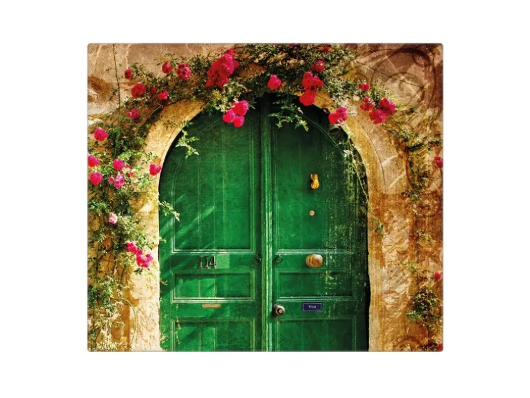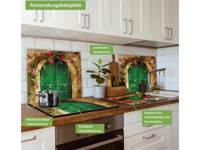 Banjado Herdabdeckplatte Glas 1 Teilig 60x52CM Schneidebrett Herdabdeckung Mit Motiv Ferienhaus