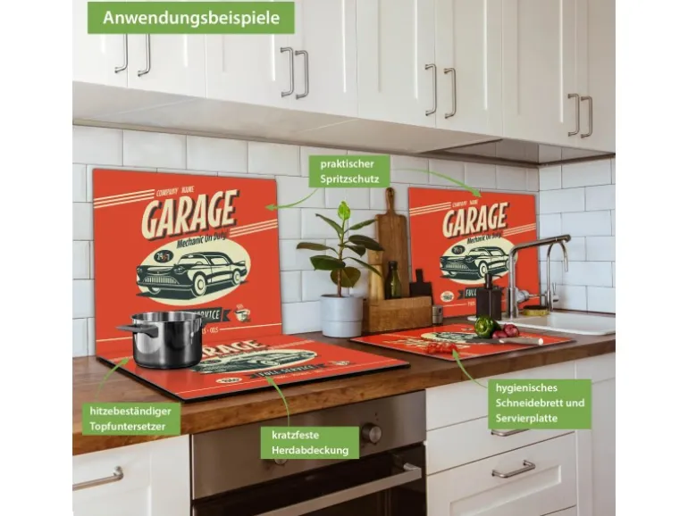 Banjado Herdabdeckplatte Glas 1 Teilig 60x52CM Schneidebrett Herdabdeckung Mit Motiv Full Service