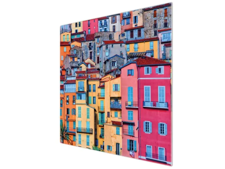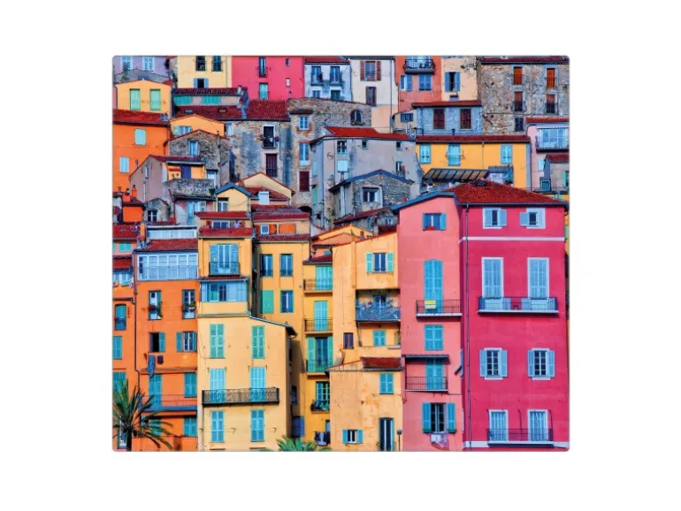 Banjado Herdabdeckplatte Glas 1 Teilig 60x52CM Schneidebrett Herdabdeckung Mit Motiv Häuserberg