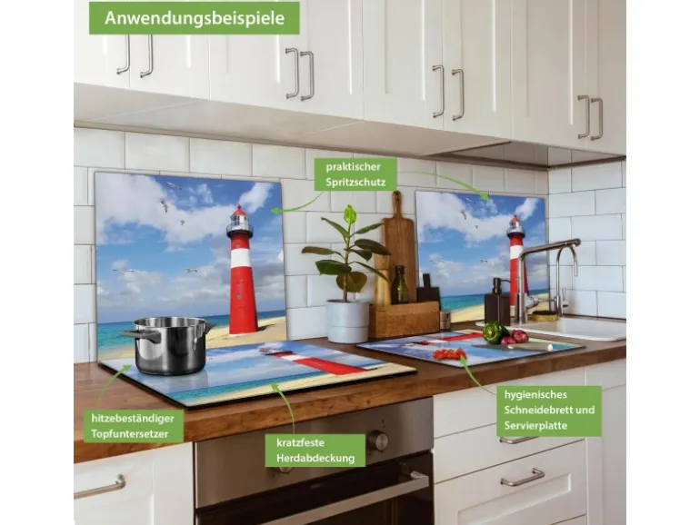 Banjado Herdabdeckplatte Glas 1 Teilig 60x52CM Schneidebrett Herdabdeckung Mit Motiv Leuchtturm Westkapelle