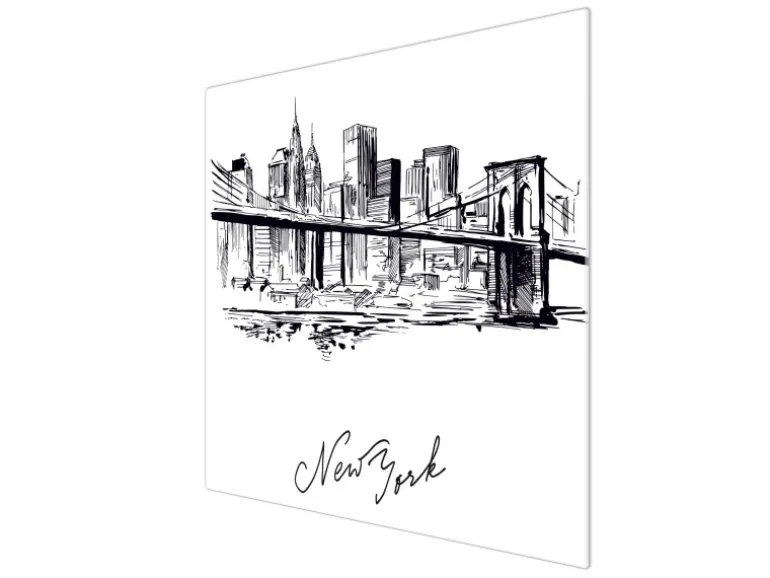 Banjado Herdabdeckplatte Glas 1 Teilig 60x52CM Schneidebrett Herdabdeckung Mit Motiv New York Skizze